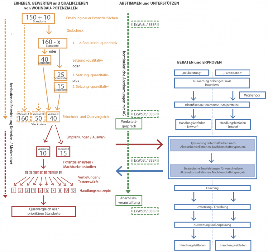 Parallel dazu liegt der zweite Schwerpunkt auf der Aktivierung der identifizierten Potenziale für den Wohnungsbau durch innovative Ansätze der Bauberatung und Beteiligung.