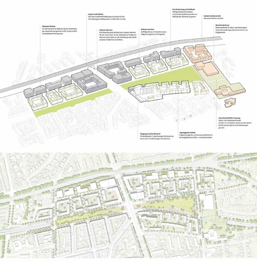 Das Konzept sieht eine minimalinvasive Erneuerung der Schnellstraße in Dammlage im Westen; Verlegung der Schnellstraße in einen Tunnel und somit Einleitung einer Transformation des Stadtraums zur Gewinnung von Bau- und Freiflächen in Döhren (Osten) vor.
